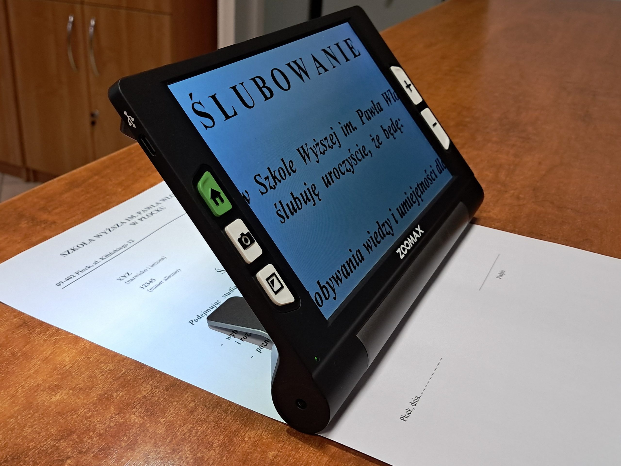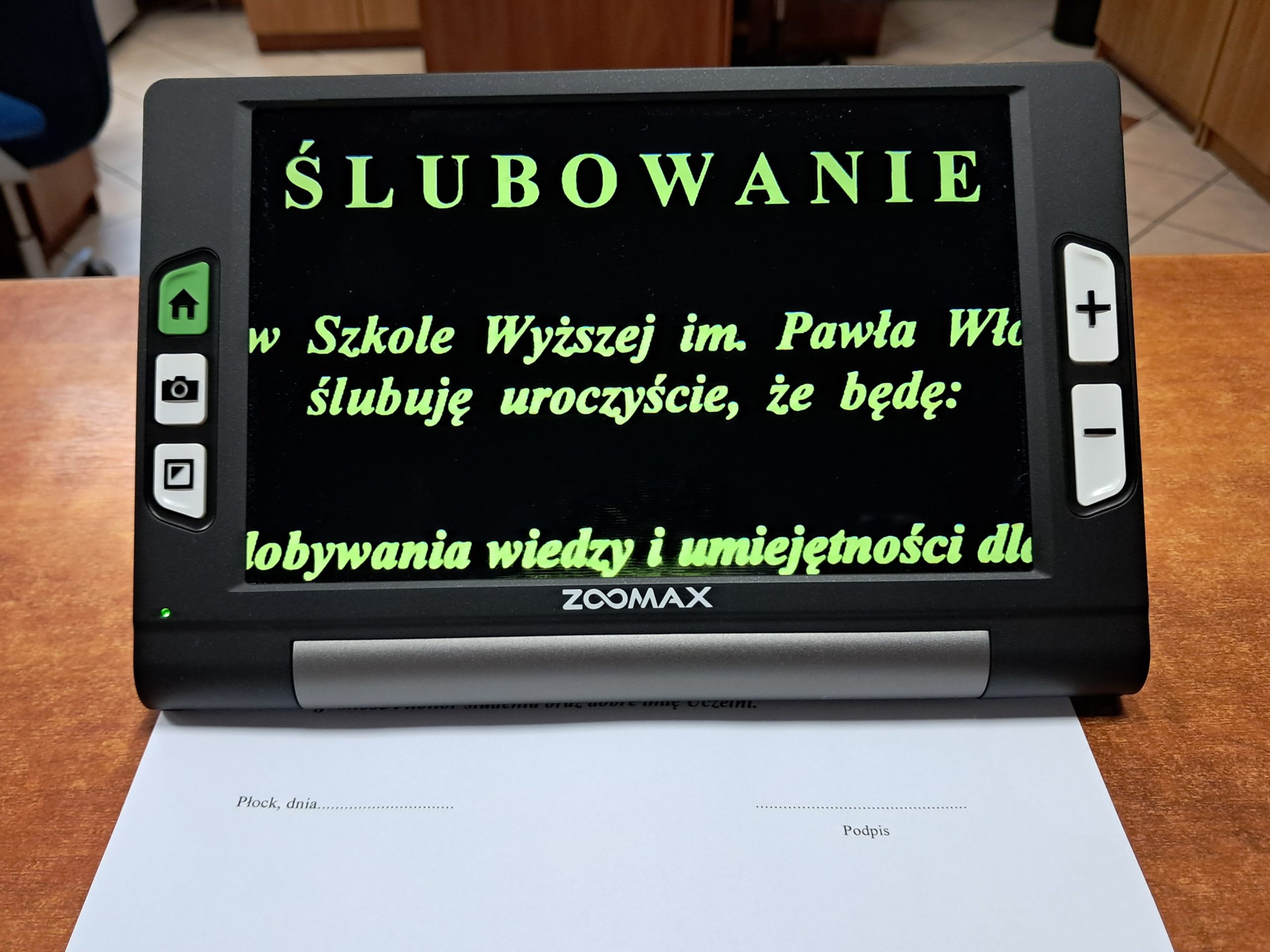 Lupy elektroniczne zostały zakupione w ramach realizowanego przez Szkołę Wyższą im. Pawła Włodkowica w Płocku projektu Uczelnia jeszcze bardziej dostępna.